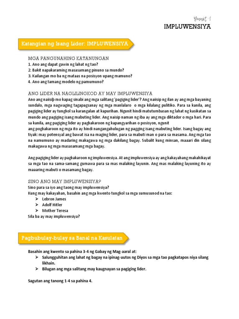 Katangian Ng Isang Lider Impluwensiya Pdf